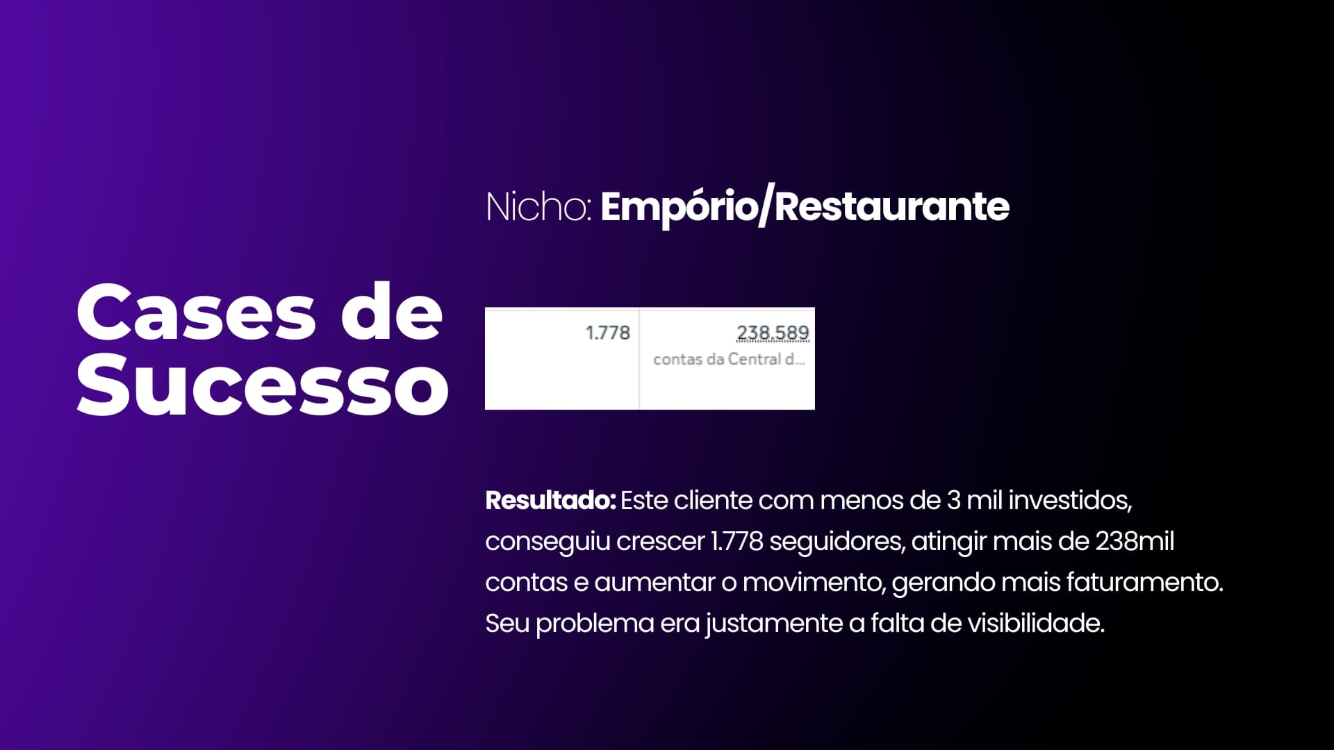 Não somos para qualquer empresa. Atendemos negócios que já faturam bem e querem escalar com estratégia, dados e investimento mínimo de R$ 1.500/mês em mídia paga.